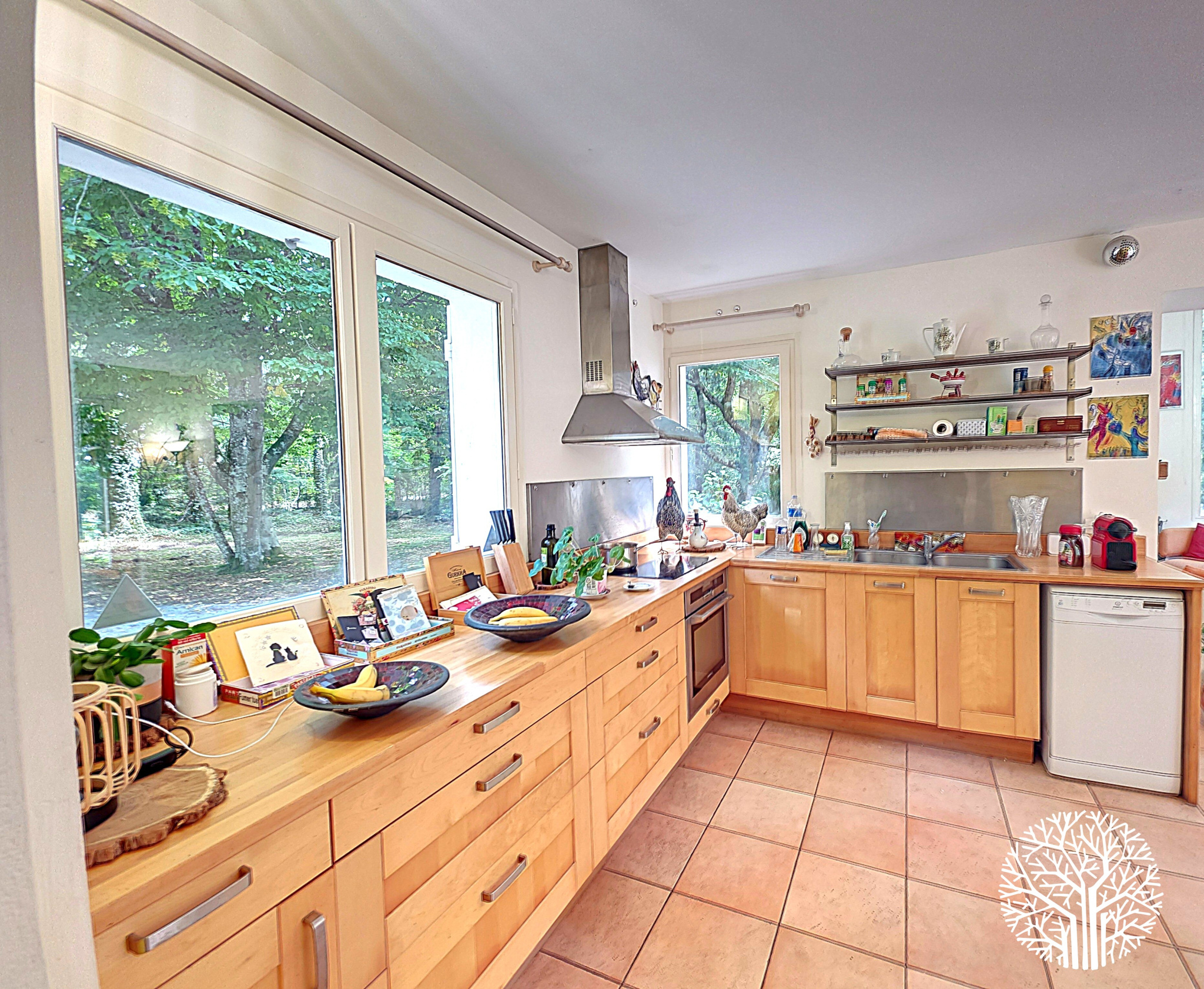 Sur la gauche, vous découvrez la CUISINE, SALLE À MANGER ET SALON TRÈS LUMINEUX.