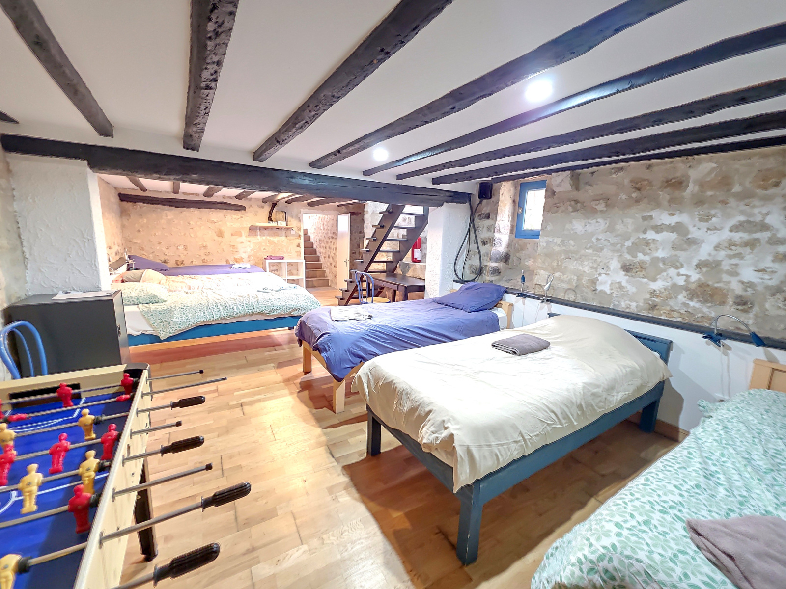 Ce gîte spacieux est conçu pour ACCUEILLIR DE GRANDS GROUPES et offre une multitude de possibilités : Au rez-de-chaussée, un vaste hall dessert une CUISINE PROFESSIONNELLE ENTIÈREMENT ÉQUIPÉE et une GRANDE SALLE À MANGER pour la convivialité.